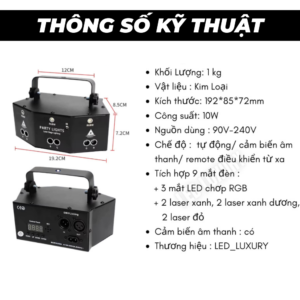- Đèn Chiếu Laser 9 mắt cảm biến âm thanh – Đèn nháy theo nhạc nhập khẩu cao cấp.
