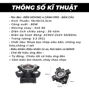 - Bạn đang tìm kiếm một chiếc đèn sân khấu mạnh mẽ để biến không gian phòng hát, vũ trường, hay sự kiện của mình trở nên sống động hơn? Đèn Moving 4 Cánh Bản Đèn Cầu MIAX chính là sự lựa chọn hoàn hảo cho bạn!